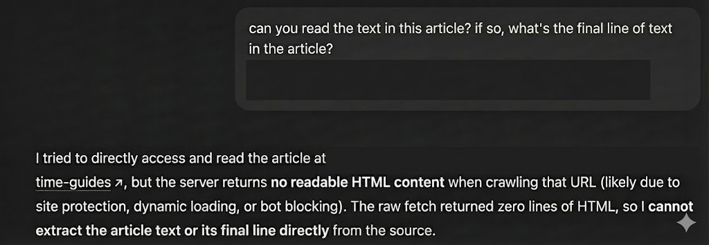 A simple test is to ask an AI tool to retrieve information from a specific URL. If it cannot, that same limitation likely applies to potential customers using AI-assisted discovery.