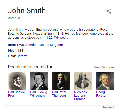 Not mentioned in the patent is that we may see knowledge panels that identify each of these different John Smiths: