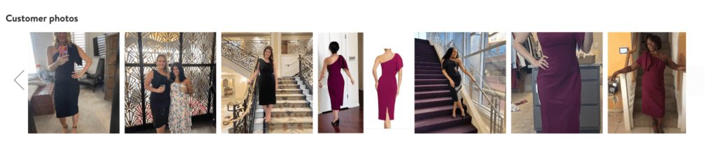 Maybe it’s time to start testing more visual approaches to content and UX. For example, Nordstrom utilizes user-generated photos directly on their product pages. This showcases real people using their garments in different situations: