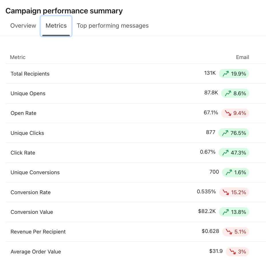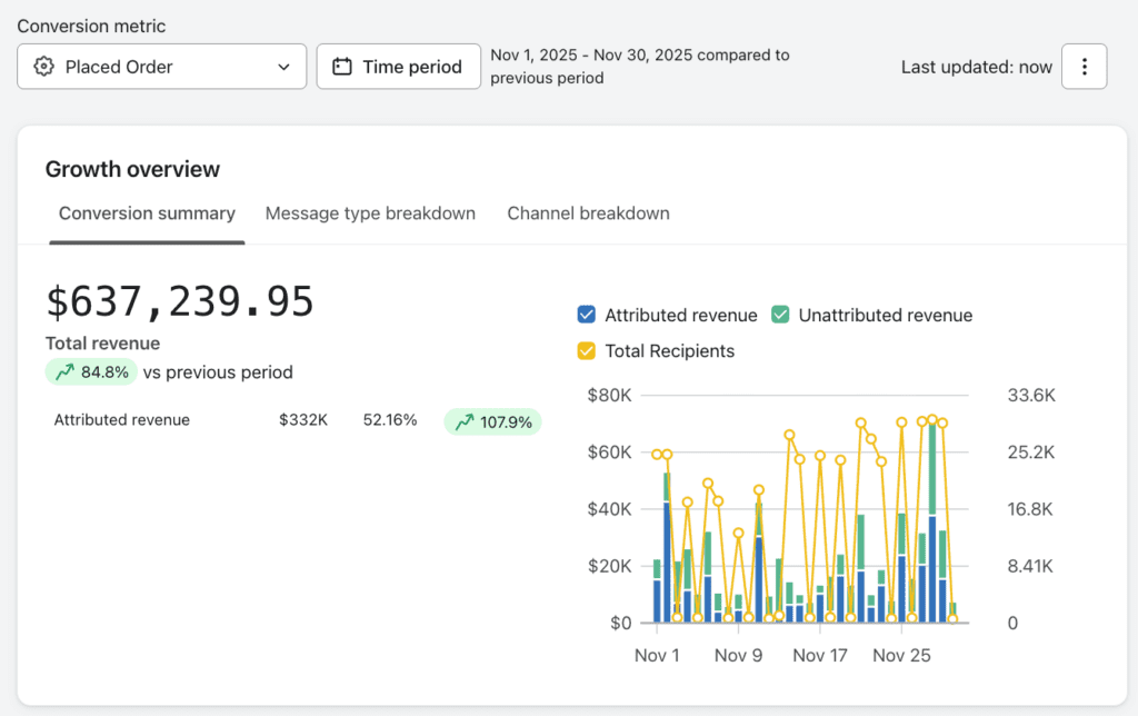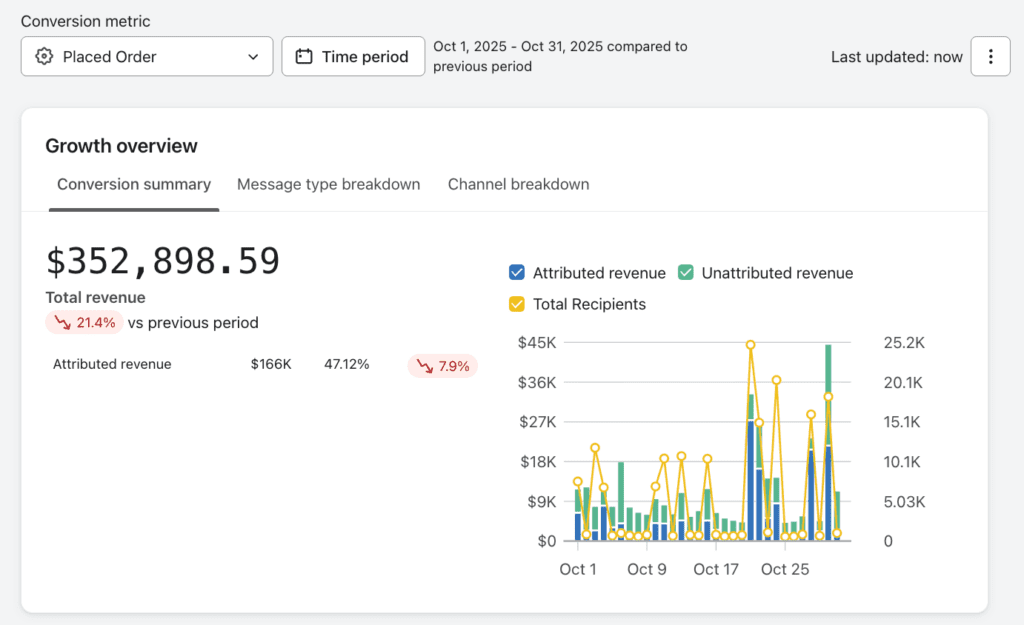 | Email Attributed Revenue | $166,272.93 | $332,362.73 (↗107.9%) |