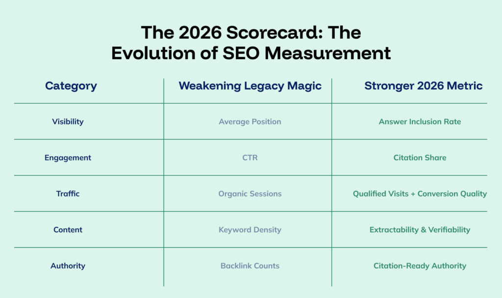 Legacy SEO Metrics vs. 2026 AI-Era Growth Metrics