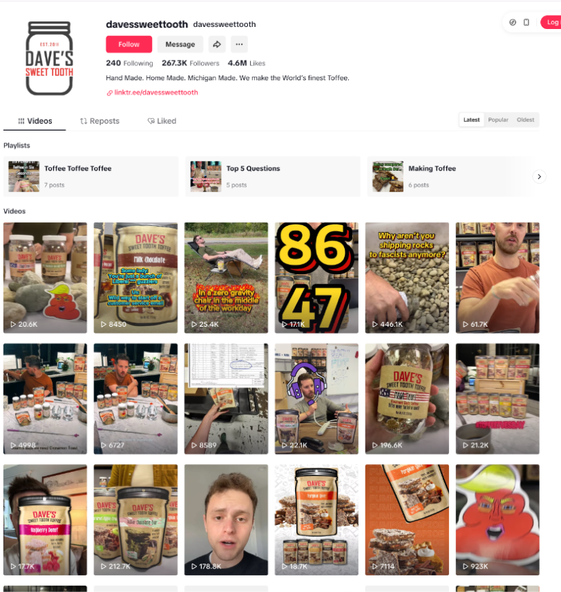 Founded in Michigan from a firefighter’s kitchen recipe, Dave’s Sweet Tooth is a family-owned toffee brand known for bold flavors, small-batch quality, and a playful, authentic voice that keeps fans coming back.
