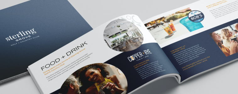 We were also tasked with designing logos for Sterling Grove’s Food + Drink program and the spa, establishing tertiary color pallets and creating an amenities brochure. We wanted our creatives to get at the heart of what Sterling Grove offered, which was the chance for homebuyers to build their desired lifestyle within a community that provided a unique blend of everyday luxury and authentic charm.