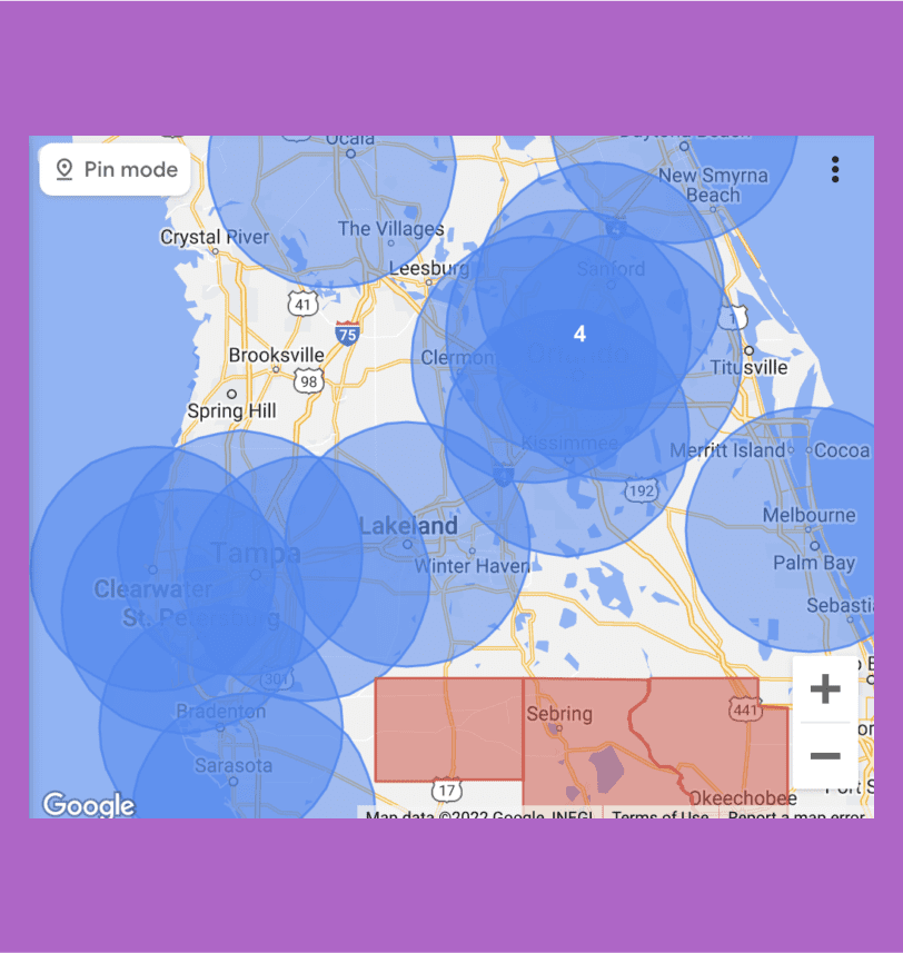 By using ZIP code targeting, we resolved the overlapping geography, so the ad spend was efficiently targeting each ZIP code surrounding the client’s target area of Central Florida.